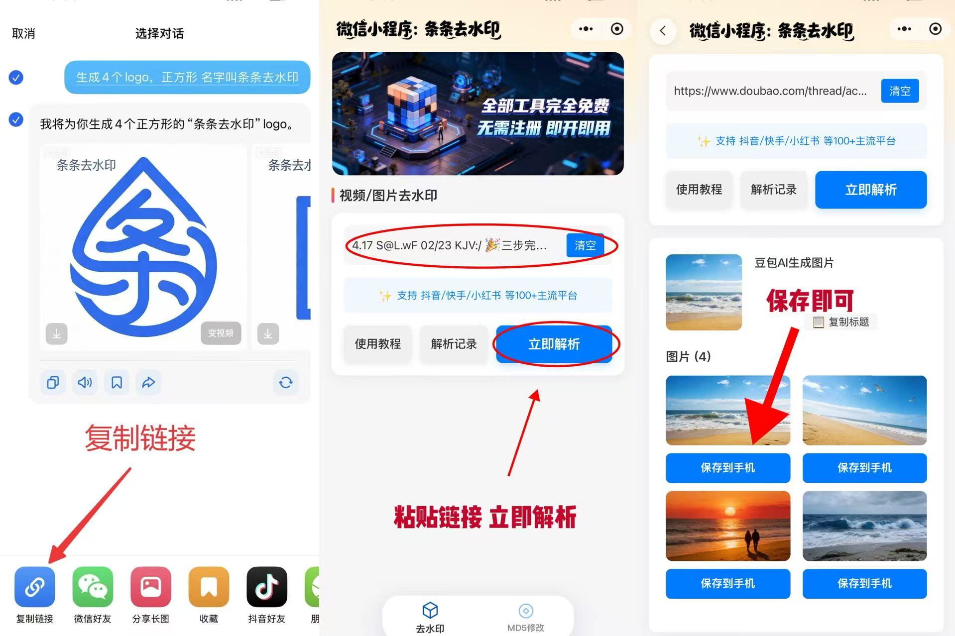 打开后直接粘贴刚才豆包复制的链接 ->立即解析